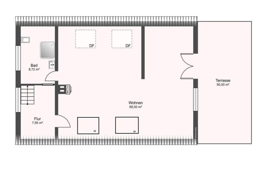 Im Außenbereich lädt eine ca. 50 m² große Dachterrasse zum Entspannen und Verweilen ein – ideal für gesellige Grillabende oder ruhige Sonnenstunden.